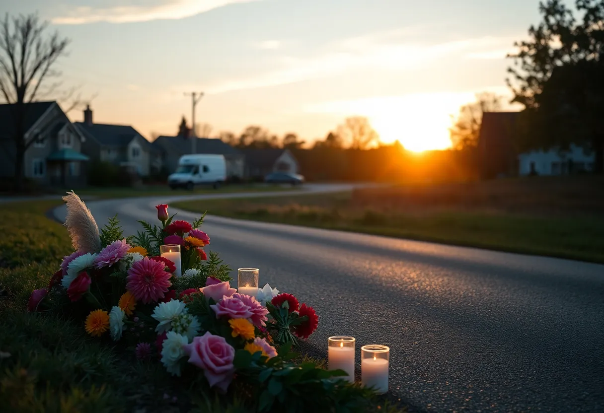 Memorial candles and flowers by a roadside